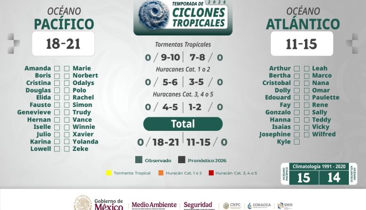 También se informó que las condiciones oceánicas y atmosféricas, particularmente la presencia del fenómeno de El Niño, podrían influir en el desarrollo e intensidad de los ciclones, así como en la distribución de las lluvias durante la temporada, lo que incrementa la probabilidad de precipitaciones significativas en distintas regiones del país.