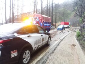 La dependencia da a conocer que ya se encuentra personal en el lugar para brindar el apoyo correspondiente ya que el tránsito es lento por la presencia de lluvia y se realizarán acciones coordinadas para liberar por completo la vía en las próximas horas.