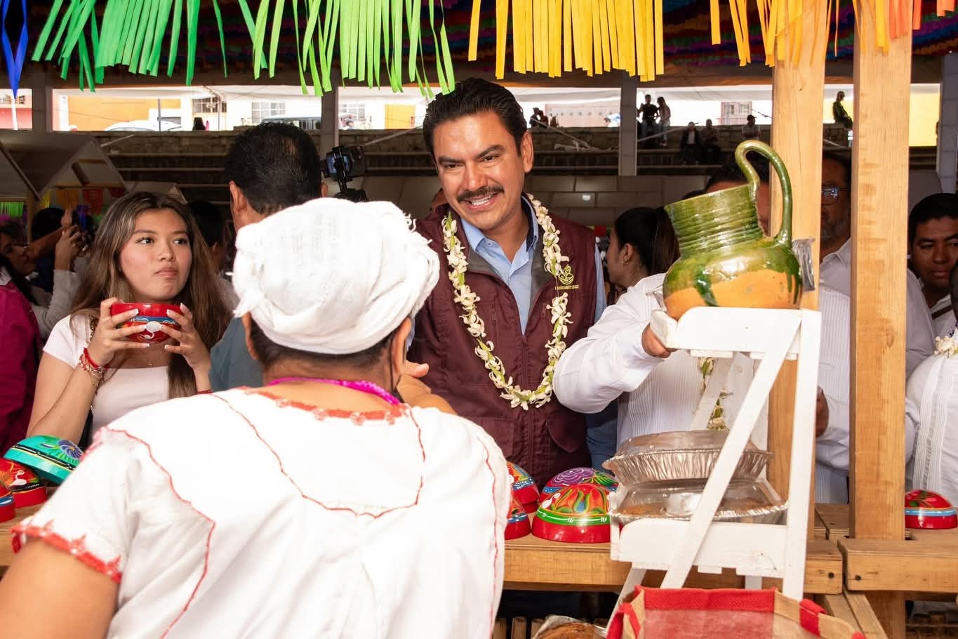 Acompañados por la Diosa Centéotl 2025 Patricia Casiano y Abel Maclovio Pacheco, Presidente Municipal de San Andrés Huayapam, las autoridades dieron inicio a esta feria que reconoce el esfuerzo cotidiano de las mujeres cocineras tradicionales de San Andrés Huayapam, guardianas del tejate, conocido como la bebida de los dioses y del tamal, símbolo de nuestras raíces.