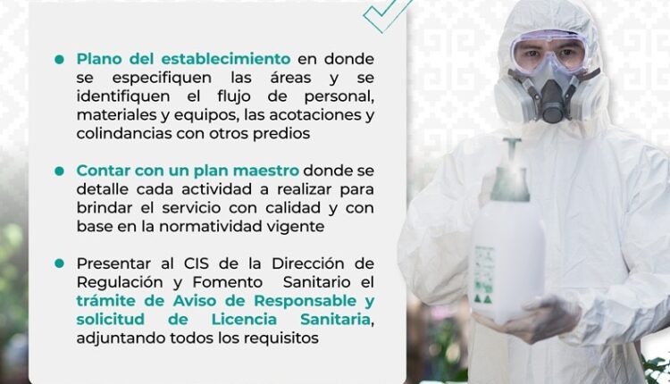 La institución señala que las empresas de este giro deben encontrarse en un local establecido, contar con licencia sanitaria vigente, tener un responsable sanitario, ser parte del Padrón Estatal de Empresas Autorizadas por la Comisión Federal para la Protección Contra Riesgos Sanitarios (Cofepris), y no debe contar con suspensión de trabajos o servicios.