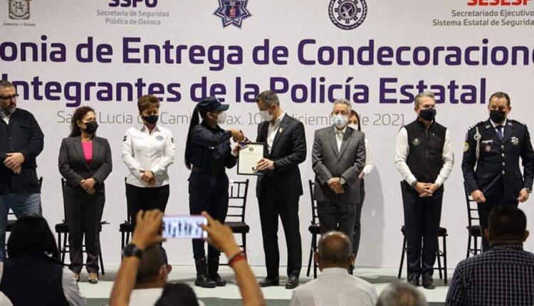 “Estamos aquí para condecorar a las mujeres y hombres que nos dan seguridad pública con responsabilidad, son ustedes y todos los policías estatales que nos dan un Oaxaca seguro, los que le dan la posibilidad a los niños, niñas, mujeres, hombres y empresarios salir con seguridad y generar el desarrollo para el estado”, señaló.