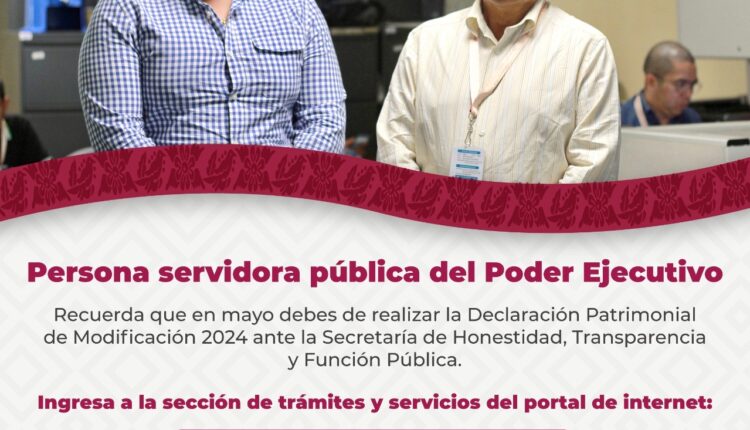 Tlalixtac de Cabrera, Oax. 2 de abril de 2024.- Todas las personas servidoras públicas del Poder Ejecutivo Estatal que hayan desempeñado un empleo, cargo o comisión durante el ejercicio 2023 o años anteriores y sigan activos, tienen la obligación de presentar en mayo la declaración patrimonial de modificación 2024 ante la Secretaría de Honestidad, Transparencia y Función Pública.