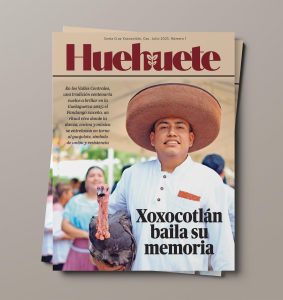 La revista toma su nombre del Huehuete, figura que representa a una persona sabia en costumbres de la población, quien acompaña rituales comunitarios importantes. Este personaje simboliza el conocimiento vivo de las tradiciones de Santa Cruz Xoxocotlán.