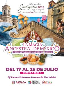 Del 17 al 25 de julio, de 11:00 a 20:00 horas, los seis Pueblos Mágicos de Oaxaca: Capulálpam de Méndez, Huautla de Jiménez, San Pablo Villa de Mitla, Mazunte, San Pedro y San Pablo Teposcolula, y Santa Catarina Juquila y el Barrio Mágico de Jalatlaco; estarán presentes con su gastronomía, arte popular y calidez a través de 36 stands instalados en el recinto.