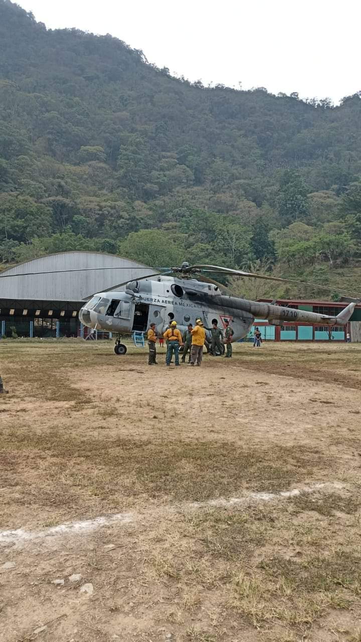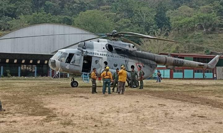 Para reforzar los trabajos de combate del incendio por tierra que se realizan en San José Tenango, en la región de la Sierra de Flores Magón, arribó el helicóptero de la Secretaría de la Defensa Nacional (Sedena), informó el Gobierno del Estado a través de la Comisión Estatal Forestal (Coesfo).