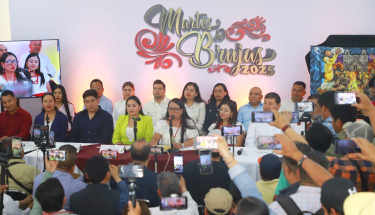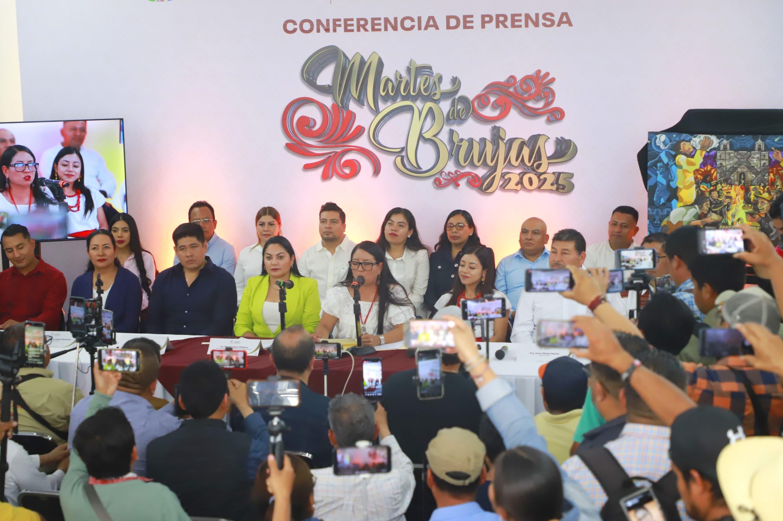 Santa Cruz Xoxocotlán, Oaxaca, 24 de febrero de 2025. Con la revelación de la imagen oficial y la programación de los Martes de Brujas 2025, el Gobierno de Santa Cruz Xoxocotlán, que preside Nancy Benítez Zárate, realizó la presentación oficial de las actividades que enmarcaran esta tradición cultural y artística.