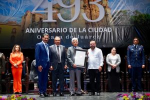 Durante la ceremonia, se entregaron distinciones a oaxaqueñas y oaxaqueños destacados que han enriquecido la vida comunitaria y el prestigio de la ciudad a nivel nacional e internacional.