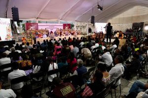 Previo a la entrega del cetro, el Gobernador Salomón Jara Cruz, acompañado de la Presidenta Honoraria del Sistema DIF Oaxaca, Irma Bolaños Quijano; celebró que las mujeres participantes compartieran sus saberes, su herencia y la vasta cultura de Oaxaca, e hicieran hincapié por el rescate, preservación y fortalecimiento de las lenguas y tradiciones.