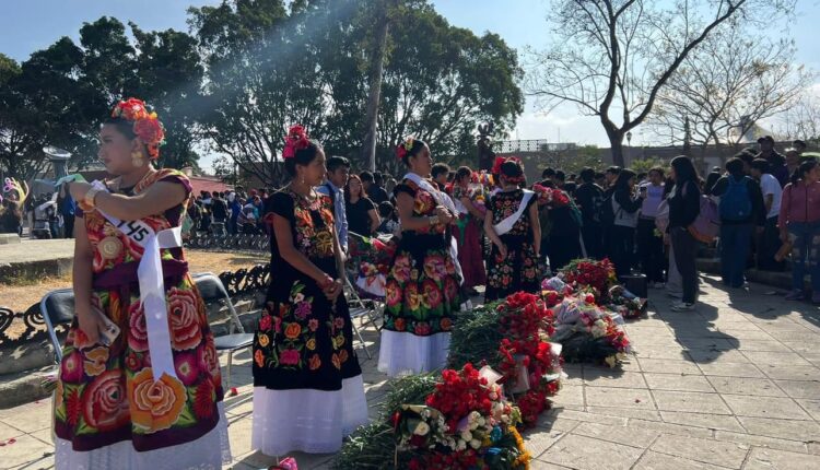 Las estudiantes de la universidad que lucieron atuendos de las ocho regiones del estado de Oaxaca, caminaron alrededor del monumento al Benemérito de las América para mantener la tradición de la época de Cuaresma de reconocer a las mujeres.