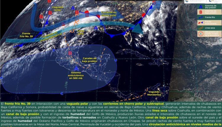 Asimismo, el viento prevalecerá de componente este y sureste en velocidades de 20 a 35 km/h con rachas de 40 a 60 km/h, principalmente en el Istmo y Golfo de Tehuantepec.