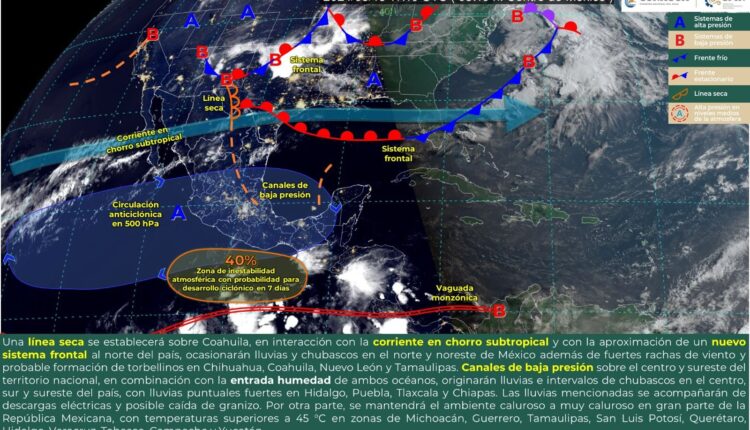 Se continúa con el monitoreo de una posible área de formación ciclónica al suroeste del Golfo de Tehuantepec con una probabilidad del 40 por ciento (baja) de desarrollo a 7 días.