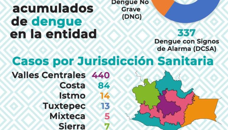Oaxaca de Juárez, Oax. 19 de junio de 2024.- Durante la primera emisión del Informe Preliminar Semanal de Dengue 2024 de los Servicios de Salud de Oaxaca (SSO) emitido a través de las plataformas de la Corporación Oaxaqueña de Radio y Televisión (Cortv), se dio a conocer que hasta la semana epidemiológica número 24 se registraron 167 casos nuevos de la enfermedad, sin defunciones confirmadas.