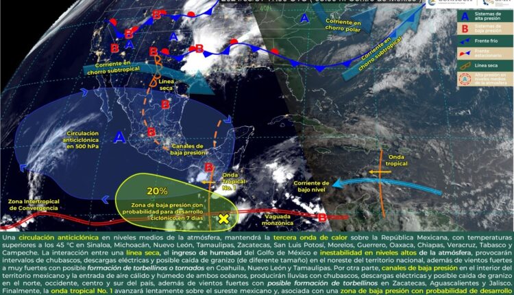 Lo anterior, de acuerdo con el pronóstico del tiempo emitido por la Comisión Nacional del Agua (Conagua) que señala que continuará la circulación anticiclónica (aire que genera ausencia de lluvias).