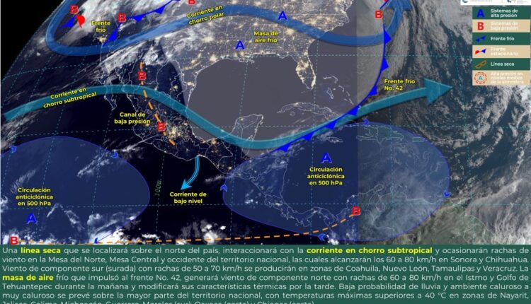 De acuerdo con información de la Comisión Nacional del Agua (Conagua) se ha establecido un sistema anticiclónico que ocasionará vientos más cálidos del sur en gran parte del estado en forma de surada con rachas locales fuertes sobre el norte y oriente del Istmo y en forma de brisa marina en la línea de costa con ligero incremento en el oleaje.