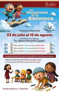 Del 22 de julio al 15 de agosto la Biblioteca Municipal “Lic. Manuel Monjardín Espejel”, se prepara para recibir a las y los pequeños de casa en una experiencia inolvidable llena de cuentos, talleres creativos y juegos didácticos.