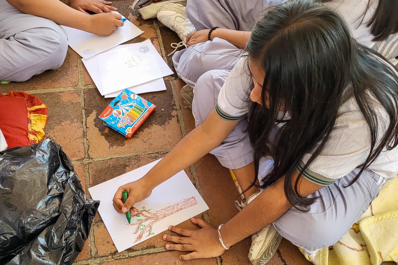 Mientras, otro grupo de la comunidad estudiantil plasmó sus ideas e interpretaciones en el mural de Minutos para Imaginar, al interior del centro escolar en donde dejaron un feliz recuerdo de la dinámica.